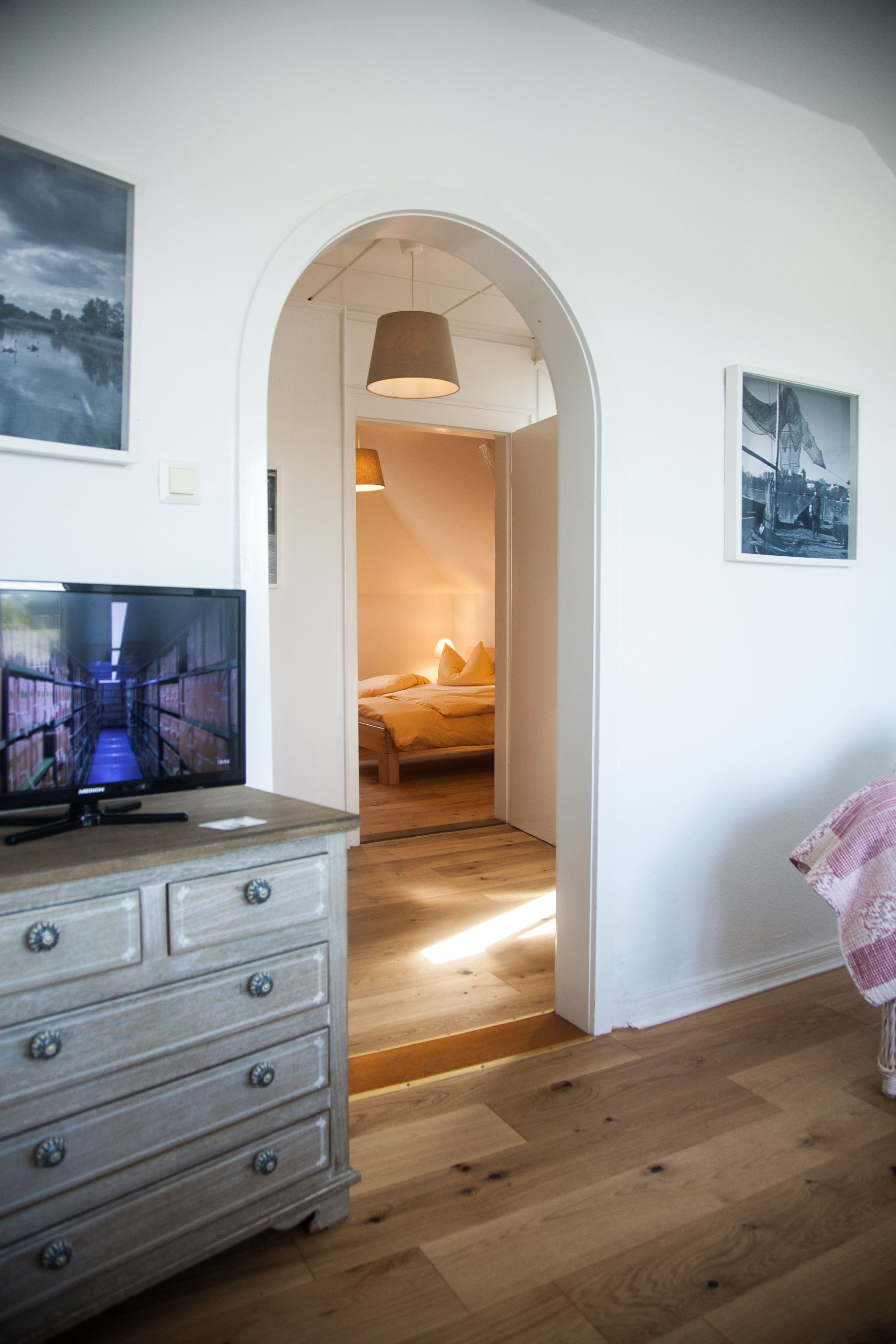 - Helle und große Gästezimmer mit Eichenparkettboden, Naturholzbetten und Bad.